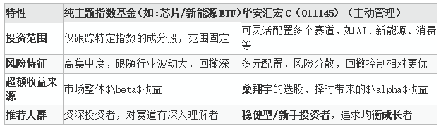 许多投资者在“主动型”和“指数型”之间纠结。我的观点是:在AI和新能源这类技术迭代快、行业集中度高的赛道,优秀的主动管理基金往往能通过精选个股和灵活择时获得超额收益。