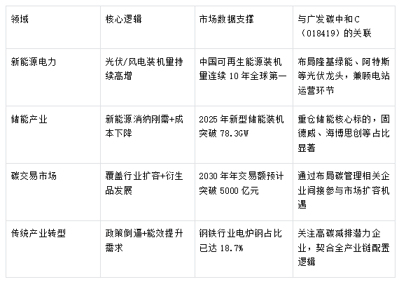 4. 碳中和全产业链:政策确定性最强、市场空间最广阔的核心赛道,2025-2030年相关投资规模预计超5万亿元,广发碳中和C(018419)正是聚焦这一全产业链的优质投资工具,完美契合核心三角框架的筛选标准。