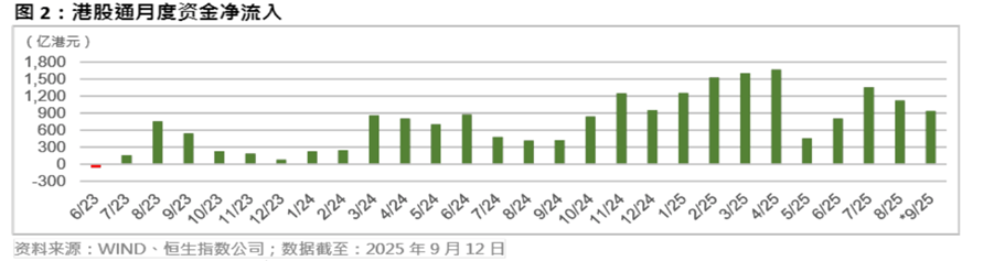 这一逻辑不仅被国际资金认可,更是理解中国商业模式的南下资金已经在用脚投票。截至2025年9月,港股通资金年内净流入已突破1万亿港元,较2024年全年高33%;截至今年6月底,公募基金在港股的投资市值已接近1万亿元人民币。据香港交易所数据,2025年前8个月,港股通的日均成交额为608亿港元,占整个市场成交额的24.5%。