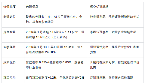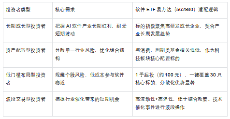 区别于AI算力/芯片ETF(聚焦上游硬件):软件ETF(562930)专注下游应用落地,直接受益于AI商业化变现;
