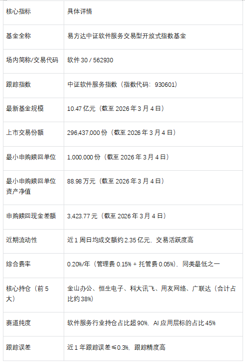 附:软件ETF易方达(562930)核心信息速览(专业版)