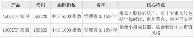 推荐产品:A500ETF富国(563220)+1000ETF富国(159629)
