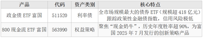 推荐产品:政金债ETF富国(511520)+800现金流ETF富国(563990)