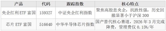 推荐产品:央企红利ETF富国(159327)+芯片ETF富国(516640)